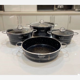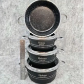 سرویس قابلمه 7پارچه دانشجویی مارک معتبر هلنا شامل 3 عدد قابلمه و یک عدد تابه قابلمه ها سایز 14(یک نفره ) سایز 16(دو نفره) سایز 18(3نفره) دسته ها فلزی و نسوز درب پیرکس رنگ بیرون کوره ای و مقاوم در برابر حرارت بالا گرانیت داخل با کیفیت