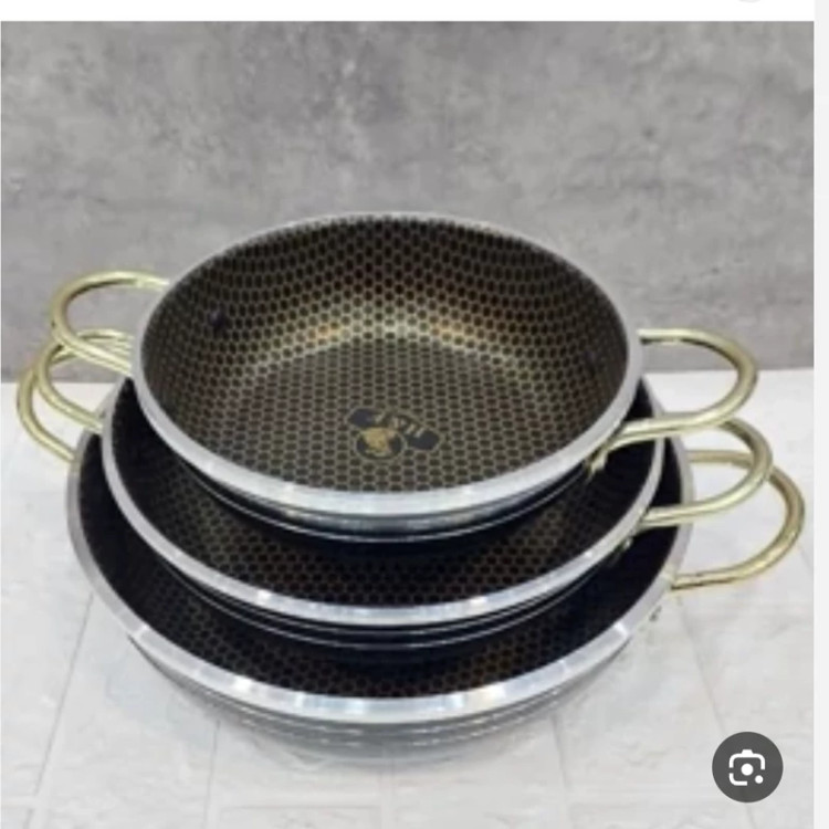 فروش ویژه سه تابه دودسته زنبوری دسته طلایی مارک معتبر هلنا