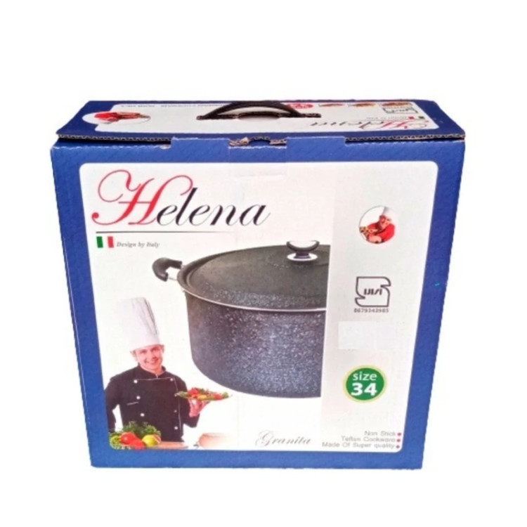 قابلمه سایز 34 مارک هلنا به قیمت تولیدی مناسب برای 15 نفر جنس بدنه ضخیم گرانیت داخل با کیفیت رنگ بیرون مشکی چروک