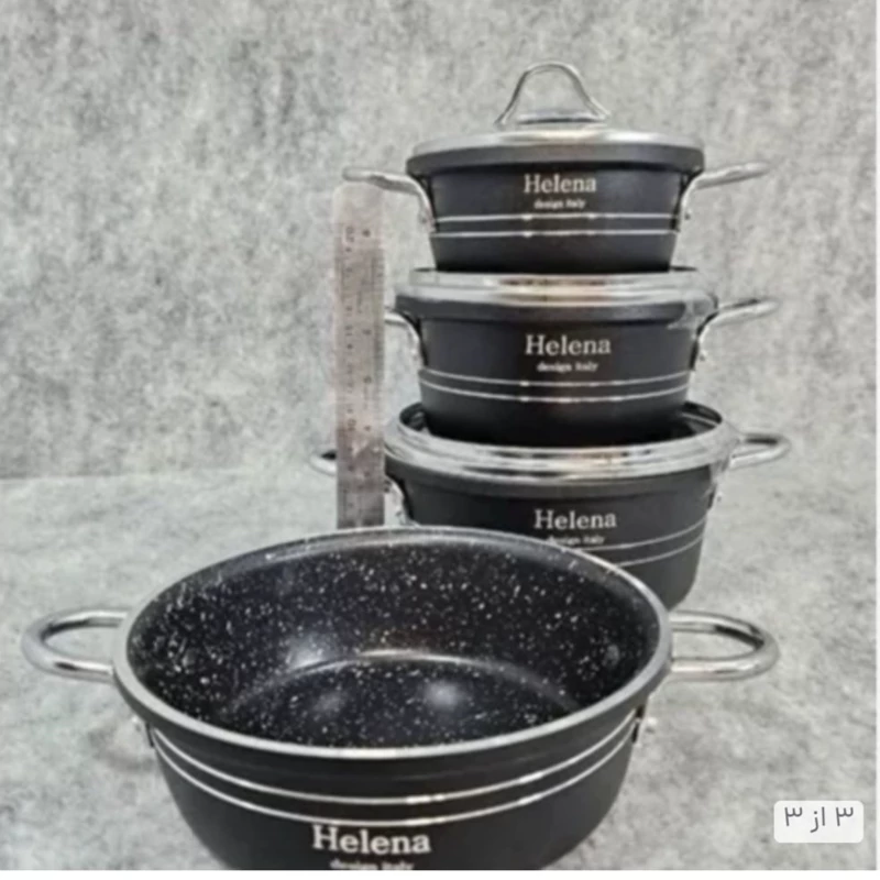 سرویس 7پارچه دانشجویی شامل قابلمه در سایزهای 14 و 16 و 18(یک نفره و دو نفره و سه نفره)و یک تابه سایز 18